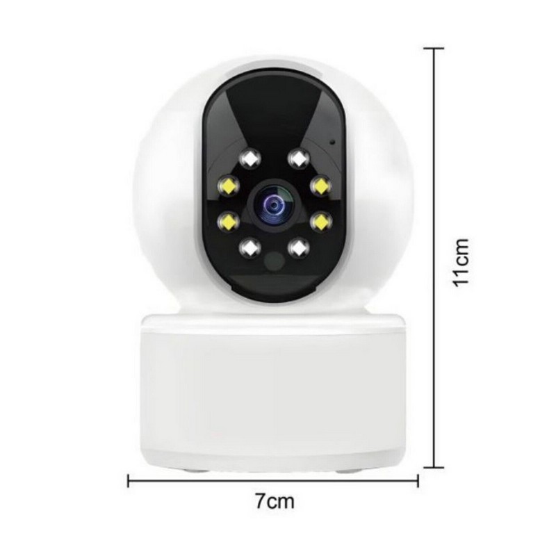 Podržava veze od 2,4 GHz i 5 GHz. Napaja se putem USB napajanja. Daljinski upravljiv, može se rotirati vodoravno za 355 stupnjeva i okomito za 80 stupnjeva, što vam omogućuje širok pregled cijelog okruženja u kojem je instaliran. Nadalje, ova kamera integrira zvučnik i mikrofon koji vam omogućuju slušanje i govor u isto vrijeme. Pogodan za unutarnju upotrebu u domovima za nadzor poslovnih prostora, trgovina, ureda, ali i za kontrolu djeteta koje spava zahvaljujući mogućnosti prisluškivanja okoline.