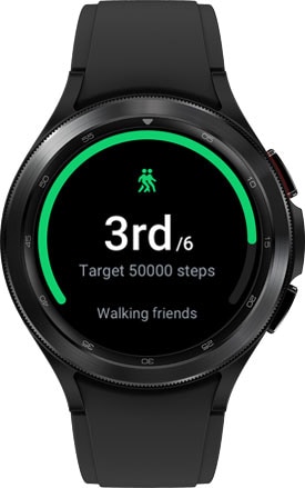 Uživajte u svakom koraku zajedno sa svojim prijateljima i obitelji zahvaljujući Galaxy Watch4 Classic pametnom satu. Pratite svoje korake i natječite se s prijateljima u zabavnom natjecanju putem Live Message sustava za razmjenu poruka uživo. Izazovi su popraćeni prigodnim značkama i sustavom bodova kako bi Vam vježbe bile još više motivirajuće, zabavne i društveno ispunjujuće.